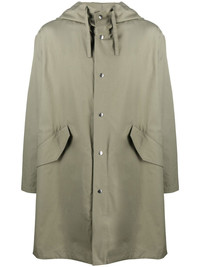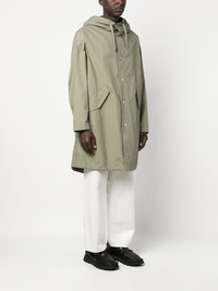 rear logo-print hooded coat Highlights - Military green - Cotton - Logo print to the rear - Classic hood - Front press-stud fastening - Long sleeves - Two front flap pockets Made in Italy Composition Cotton 100% SIZE & FIT Model measurements Height 6 ft 2 in(1.87 m) Bust/Chest 36.41 in(92.5 cm) Hips 37 in(94 cm) Waist 29.52 in(75 cm) FittingInformation This piece fits true to size. We recommend you get your regular size Cut for a loose fit Made with a mid-weight non-stretch fabric Washing instructions Dry Clean Only