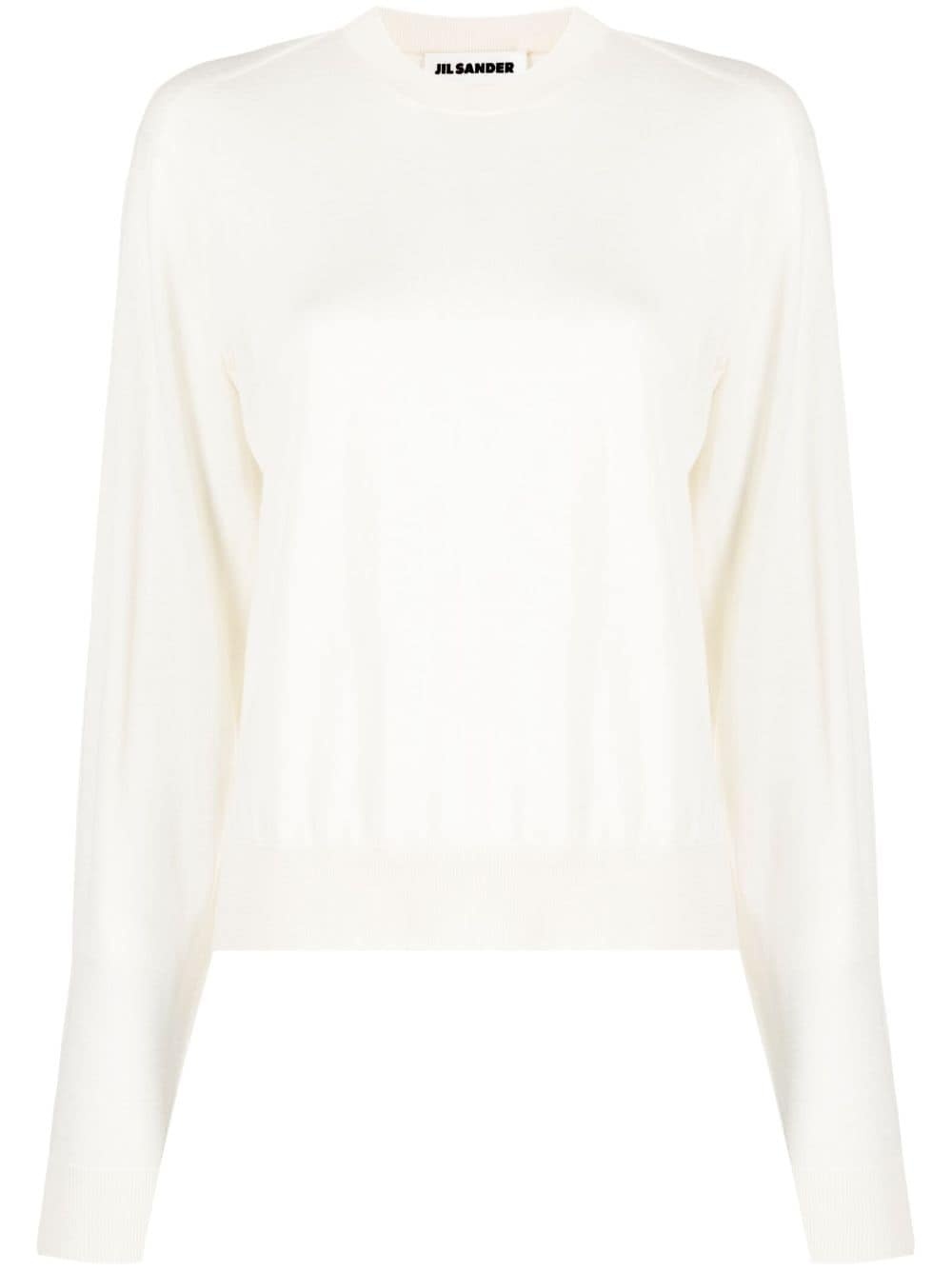 ribbed crew neck jumper Spun in Italy from a delicate blend of virgin wool, cashmere and silk, this white crew neck jumper speaks to Jil Sander's minimalist take on garments. Its understated design is cut to a relaxed silhouette and fitted with a ribbed hem and cuffs. Highlights - White - Virgin wool-cashmere blend - Knitted construction - Crew neck - Long sleeves - Ribbed cuffs and hem Made in Italy Composition Cashmere 35%, Virgin Wool 35%, Silk 30% SIZE & FIT Model measurements Height 5 ft 9 in(1.76 m) Bust/Chest 33.07 in(84 cm) Hips 34.64 in(88 cm) Waist 25.59 in(65 cm) FittingInformation Designed for a relaxed fit, this piece allows for comfort and movement when worn Made with a lightweight knit, this piece offers some stretch This piece fits true to size – take your usual size Washing instructions Dry Clean Only