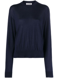 ribbed crew neck jumper Spun in Italy from a delicate blend of virgin wool, cashmere and silk, this navy crew neck jumper speaks to Jil Sander's minimalist take on garments. Its understated design is cut to a relaxed silhouette and fitted with a ribbed hem and cuffs. Highlights - Virgin wool-cashmere blend - Knitted construction - Crew neck - Long sleeves - Ribbed cuffs and hem Made in Italy Composition Cashmere 35%, Virgin Wool 35%, Silk 30% SIZE & FIT Model measurements Height 5 ft 10 in(1.77 m) Bust/Chest 32.28 in(82 cm) Hips 35.03 in(89 cm) Waist 25.19 in(64 cm) FittingInformation Designed for a relaxed fit, this piece allows for comfort and movement when worn Made with a lightweight knit, this piece offers some stretch This piece fits true to size – take your usual size Washing instructions Dry Clean Only