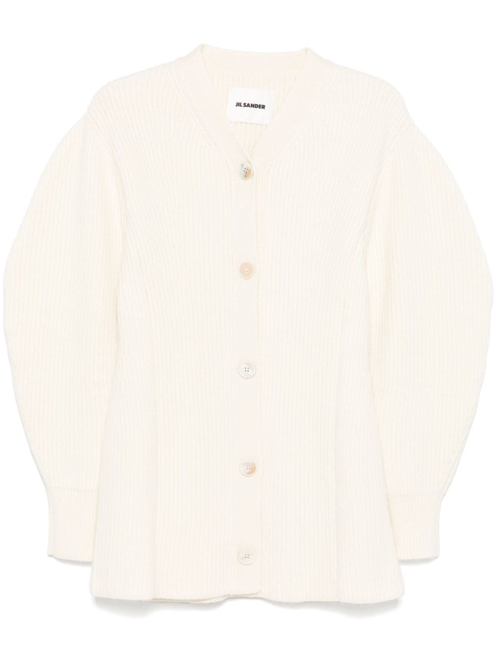 ribbed-knit cardigan Highlights - White - Wool - Ribbed knit - Front button fastening - Ribbed v-neck - Long puff sleeves - Ribbed cuffs Made in Italy Composition Wool 100% SIZE & FIT Model measurements Height 5 ft 9 in(1.75 m) Bust/Chest 30.7 in(78 cm) Hips 35.03 in(89 cm) Waist 23.62 in(60 cm) FittingInformation Designed for a slim fit that sits just away from the body offering a close yet comfortable fit Made with a heavyweight knit, this piece offers some stretch