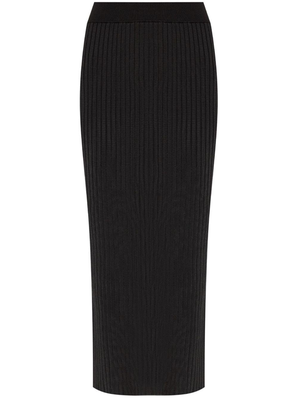 ribbed-knit midi skirt Highlights - Black - Ribbed knit - Mid-rise - Elasticated waistband - Pencil silhouette - Rear slit Made in Italy Composition Viscose 93%, Polyamide 5%, Elastane 2% SIZE & FIT FittingInformation This midi-length skirt is intended to be worn high on the waist The vented hem offers movement at the rear Made from a midweight stretch fabric, this piece offers elasticity and flexibility when worn