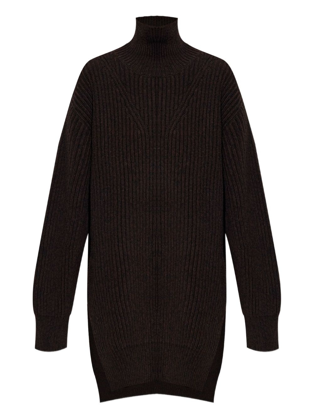 ribbed turtleneck sweater Highlights - Dark brown - High neck - Drop shoulder sleeves - Side slits - Ribbed texture Made in Italy Composition Wool 100%