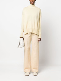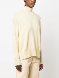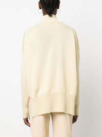 roll-neck knit jumper Highlights - Butter yellow - Cashmere - Fine knit - Roll neck - Drop shoulder - Long sleeves - Ribbed cuffs and hem - Short side slits Made in Italy Composition Cashmere 100% SIZE & FIT Model measurements Height 5 ft 10 in(1.77 m) Bust/Chest 29.92 in(76 cm) Hips 34.25 in(87 cm) Waist 23.62 in(60 cm) FittingInformation Designed to be unstructured, offering a loose fit throughout Made with a midweight knit, this piece offers some stretch This piece fits true to size – take your usual size Washing instructions Dry Clean Only