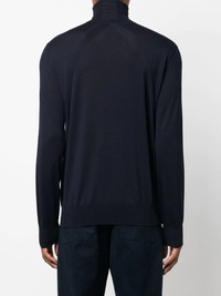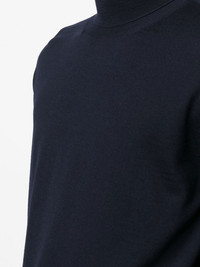 roll-neck merino wool jumper navy blue merino wool fine knit roll neck ribbed edge long sleeves straight hem Made in Italy Composition Wool 100% SIZE & FIT Model measurements Height 6 ft 2 in(1.87 m) Bust/Chest 36.22 in(92 cm) Hips 37 in(94 cm) Waist 27.95 in(71 cm) Measurement CHEST 41.73 in(106 cm) LENGTH 27.16 in(69 cm) SLEEVE LENGTH 26.37 in(67 cm) FittingInformation This piece fits true to size. We recommend you get your regular size Cut for a relaxed fit Made with a mid-weight fabric Washing instructions Dry Clean Only