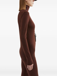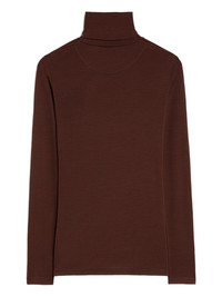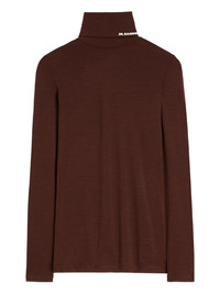 roll-neck T-shirt Highlights - Chocolate brown - Logo print to the front - Long sleeves - Straight hem Made in Italy Composition Polyester 55%, Virgin Wool 45% Washing instructions Read Manufacturer Guidelines