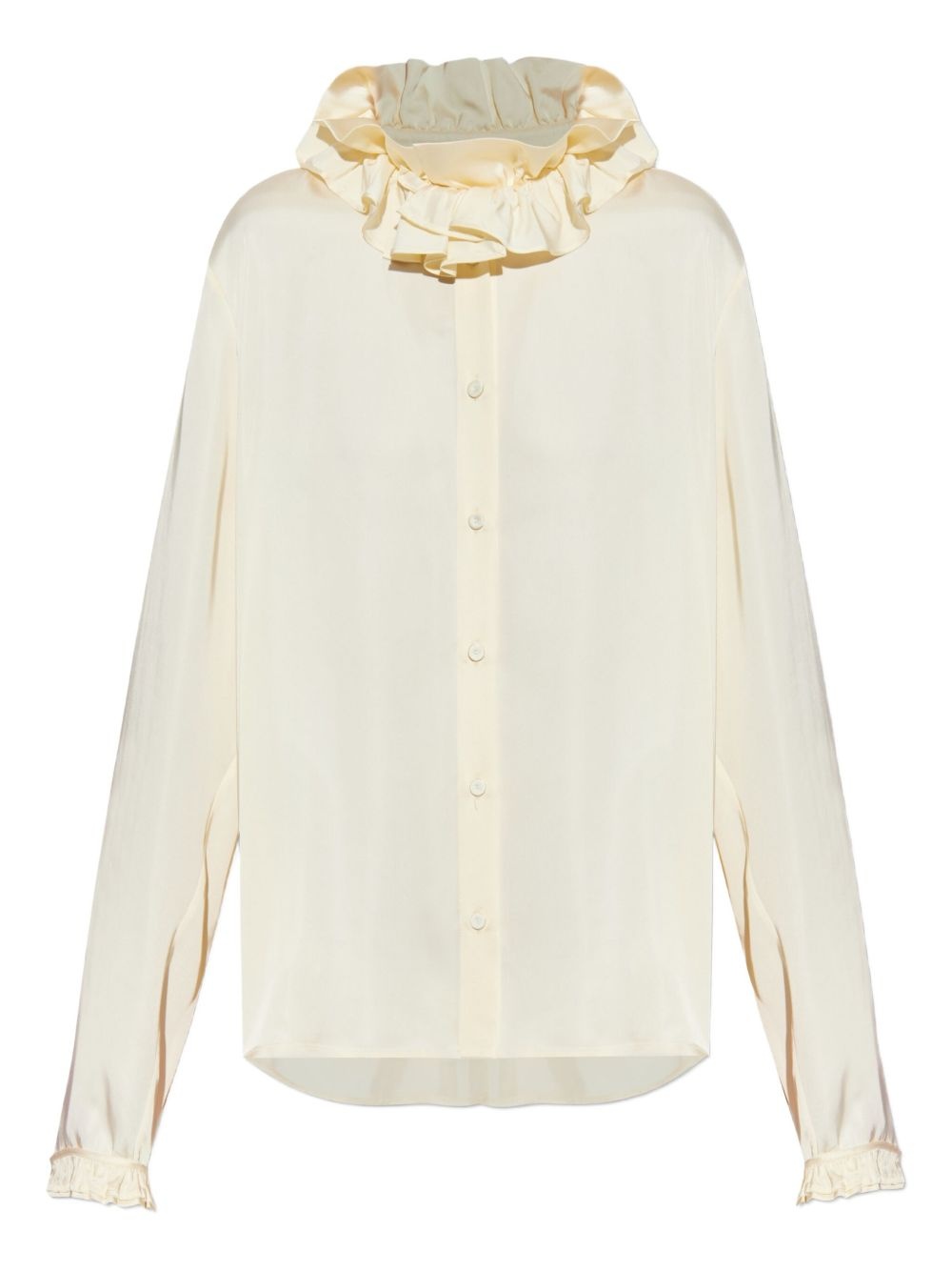 ruffled high-neck blouse Highlights - Light yellow - Ruffled high neck - Button fastening - Gathered cuffs - Long sleeves Made in Italy Composition Viscose 100%