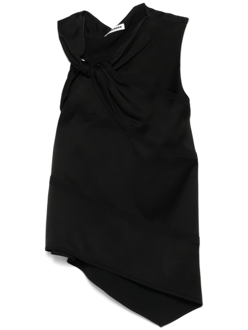 satin blouse Highlights - Black - Asymmetric neck - Sleeveless - Knot detailing - Draped detailing Made in Italy Composition Acetate 74%, Viscose 26% SIZE & FIT Model measurements Height 5 ft 10 in(1.78 m) Bust/Chest 33.46 in(85 cm) Hips 36.22 in(92 cm) Waist 23.22 in(59 cm) FittingInformation Designed for a slim fit that sits just away from the body offering a close yet comfortable fit Made from a midweight non-stretch fabric
