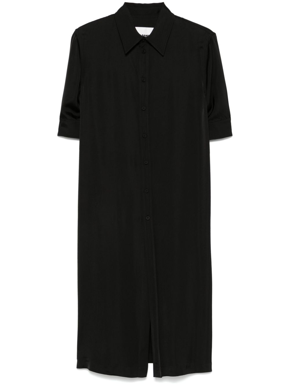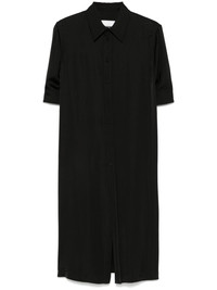 satin midi shirt dress Highlights - Black - Front button fastening - Front slit - Short sleeves - Buttoned cuffs Made in Italy Composition Viscose 100% SIZE & FIT Model measurements Height 5 ft 11 in(1.8 m) Bust/Chest 31.49 in(80 cm) Hips 36.61 in(93 cm) Waist 24.4 in(62 cm) FittingInformation Designed for a relaxed fit, this piece allows for comfort and movement when worn Made from a midweight non-stretch fabric