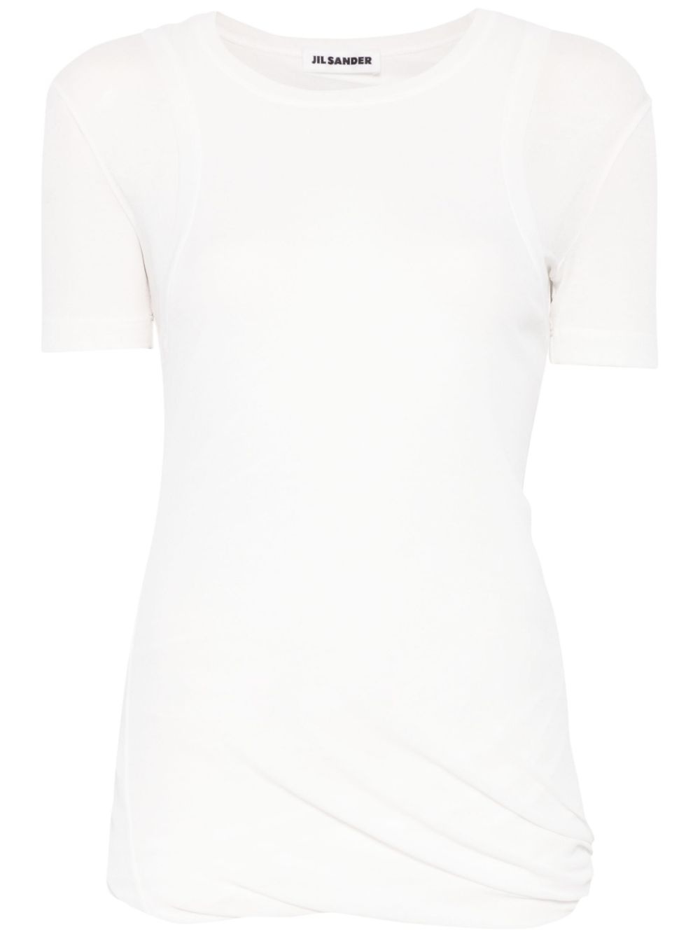 short-sleeves crew-neck T-shirt Highlights - White - Layered effect - Semi-sheer panels Made in Italy Composition Cotton 100% SIZE & FIT FittingInformation Designed for a slim fit that sits just away from the body offering a close yet comfortable fit Made from a midweight non-stretch fabric, this piece offers minimal elasticity when worn