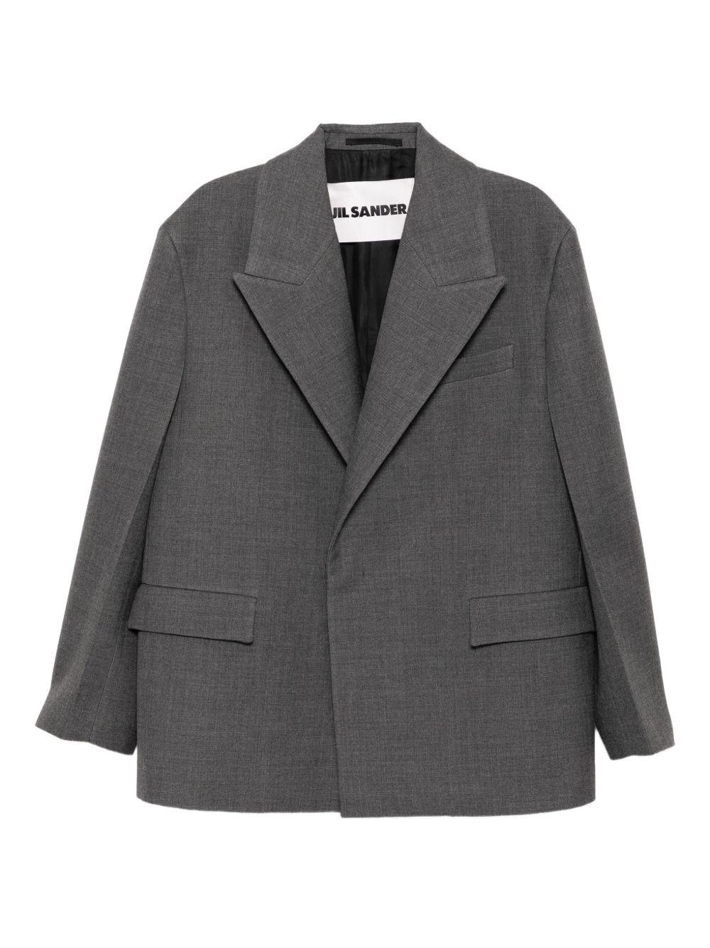 single-breasted blazer Highlights - Steel grey - Front button fastening - Chest welt pocket - Two side flap pockets - Long sleeves Made in Italy Composition Virgin Wool 99%, Silk 1% SIZE & FIT Model measurements Height 6 ft 2 in(1.87 m) Bust/Chest 33.07 in(84 cm) Hips 35.43 in(90 cm) Waist 26.77 in(68 cm) FittingInformation Designed to be unstructured, offering a loose fit throughout The internal shoulder pads offer a structured shape Made from a midweight non-stretch fabric Washing instructions Dry Clean Only