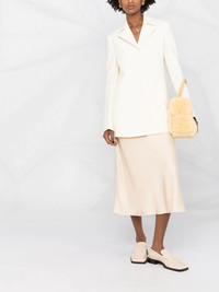 single-breasted blazer ivory virgin wool concealed front fastening long sleeves camp collar long sleeves Made in Italy Composition Outer: Virgin Wool 100% Lining: Viscose 100% SIZE & FIT Model measurements Height 5 ft 11 in(1.8 m) Bust/Chest 31.49 in(80 cm) Hips 35.82 in(91 cm) Waist 24.8 in(63 cm) FittingInformation This piece fits true to size. We recommend you get your regular size Cut for a loose fit Made with a mid-weight non-stretch fabric Washing instructions Dry Clean Only