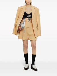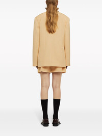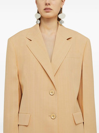 single-breasted crepe blazer Highlights - Peach orange - Crepe texture - Wide notch lapels - Shoulder pads - Long sleeves - Front button fastening - Chest welt pocket - Two front flap pockets - Straight hem Made in Italy Composition Viscose 58%, Silk 42% SIZE & FIT Measurement BUST 37.79 in(96 cm) LENGTH 31.49 in(80 cm) Shoulder Width 18.11 in(46 cm) SLEEVE LENGTH 25.19 in(64 cm) WAIST 37 in(94 cm) FittingInformation Designed for a boxy fit, intended for a loose fit throughout The internal shoulder pads offer a structured shape Made from a midweight non-stretch fabric This piece fits true to size – take your usual size Washing instructions Read Manufacturer Guidelines