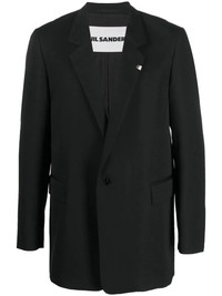single-breasted wool blazer black wool/cotton silver-tone hardware notched lapels front button fastening two side flap pockets long sleeves split cuffs full lining Made in Italy Composition Lining: Cotton 100%, Cupro 100% Outer: Wool 100% SIZE & FIT Model measurements Height 6 ft 2 in(1.87 m) Bust/Chest 38.18 in(97 cm) Hips 36.61 in(93 cm) Waist 29.13 in(74 cm) FittingInformation This piece fits true to size. We recommend you get your regular size Cut for a loose fit Made with a mid-weight non-stretch fabric Measurement WAIST 40.94 in(104 cm) SLEEVE LENGTH 25.98 in(66 cm) Washing instructions Dry Clean Only
