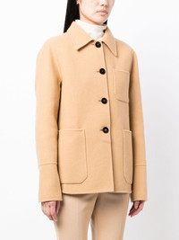 single-breasted wool jacket Highlights - Beige - Wool - Straight-point collar - Front button fastening - Chest patch pocket - Two front patch pockets - Long sleeves - Buttoned-cuff sleeves - Straight hem Made in Italy Composition Wool 100% SIZE & FIT Model measurements Height 5 ft 10 in(1.77 m) Bust/Chest 28.74 in(73 cm) Hips 35.82 in(91 cm) Waist 24.4 in(62 cm) Measurement SLEEVE LENGTH 25.19 in(64 cm) LENGTH 27.55 in(70 cm) FittingInformation Designed for a boxy fit, intended for a loose fit throughout Made from a midweight non-stretch fabric, this piece offers minimal elasticity when worn This piece fits true to size – take your usual size Washing instructions Machine Wash