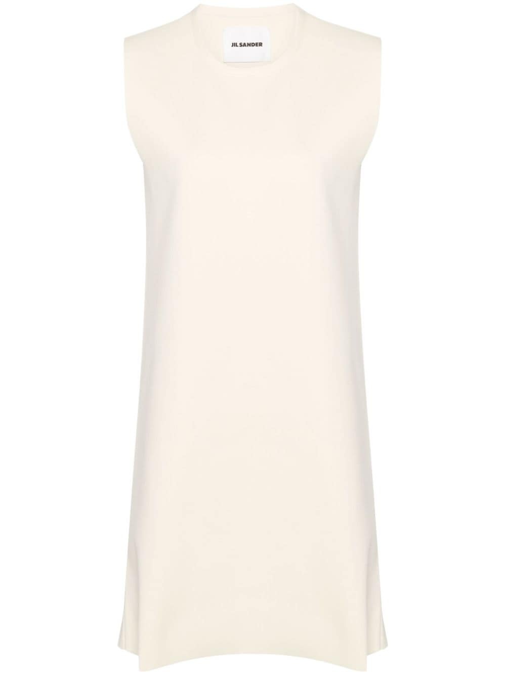 sleeveless mini dress Highlights - Vanilla white - Textured finish - Crew neck - Sleeveless - Internal logo tag - Thigh-length - Straight hem Made in Italy Composition Polyester 100% SIZE & FIT Model measurements Height 5 ft 11 in(1.8 m) Bust/Chest 32.67 in(83 cm) Hips 36.22 in(92 cm) Waist 24.4 in(62 cm) FittingInformation Designed to be unstructured, offering a loose fit throughout Made with a midweight knit, this piece offers some stretch This piece fits true to size – take your usual size Washing instructions Dry Clean Only