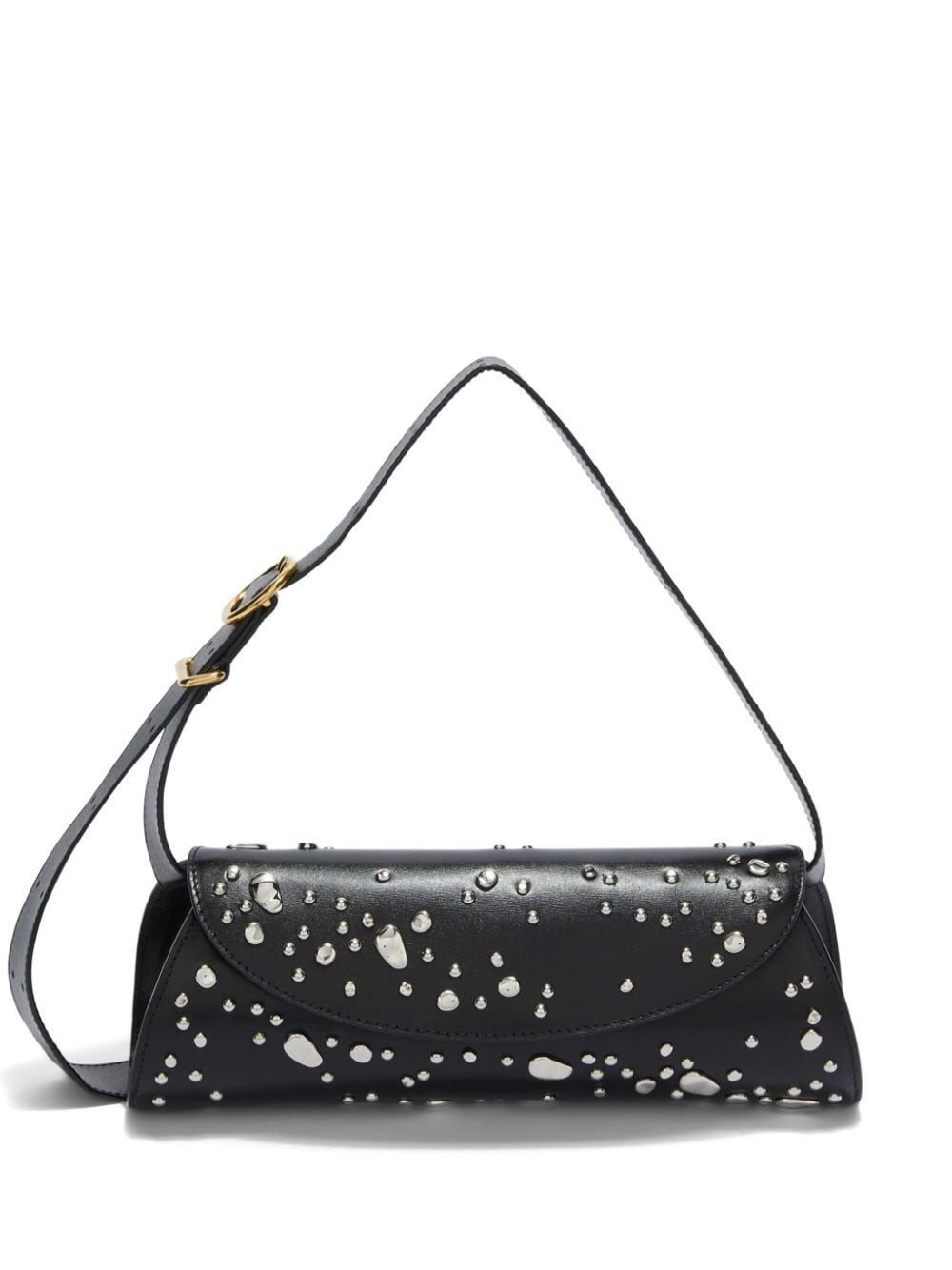 small Cannolo studded shoulder bag Highlights - Black - Calf leather - Silver-tone stud embellishment - Logo print to the front - Tube design - Adjustable shoulder strap - Foldover top with magnetic fastening - Main compartment - Internal patch pocket - Debossed internal logo - Gold-tone hardware - This piece comes complete with a protective dust bag. Made in Italy Composition Outer: Calf Leather 100%