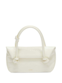 small crocodile-effect shoulder bag Highlights - White - Calf leather - Embossed crocodile effect - Logo print to the front - Knot detailing - Two top handles - Foldover top - Main compartment - This piece comes complete with a protective dust bag. Made in Italy Composition Outer: Calf Leather 100%
