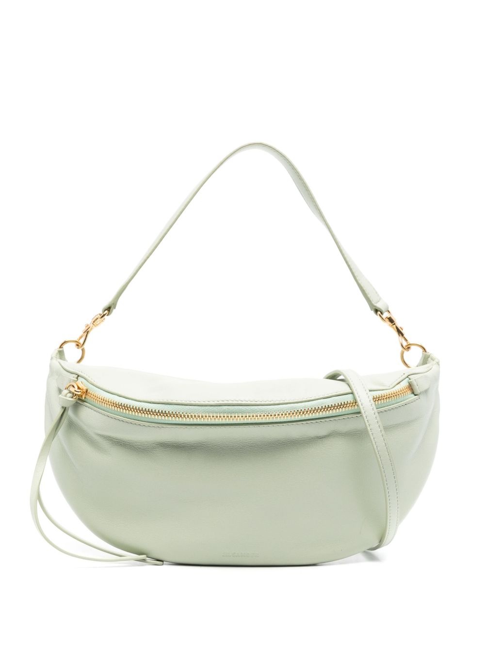small Luna belt bag Highlights - Sage green - Front zip fastening - Detachable and adjustable waist belt - Detachable shoulder strap - Debossed logo to the front Made in Italy Composition Outer: Nappa Leather 100% Lining: Nappa Leather 100% SIZE & FIT Model measurements Height 6 ft 2 in(1.87 m) Bust/Chest 36.41 in(92.5 cm) Hips 35.43 in(90 cm) Waist 29.52 in(75 cm) Measurement DEPTH 2.36 in(6 cm) HEIGHT 4.72 in(12 cm) WIDTH 10.23 in(26 cm)