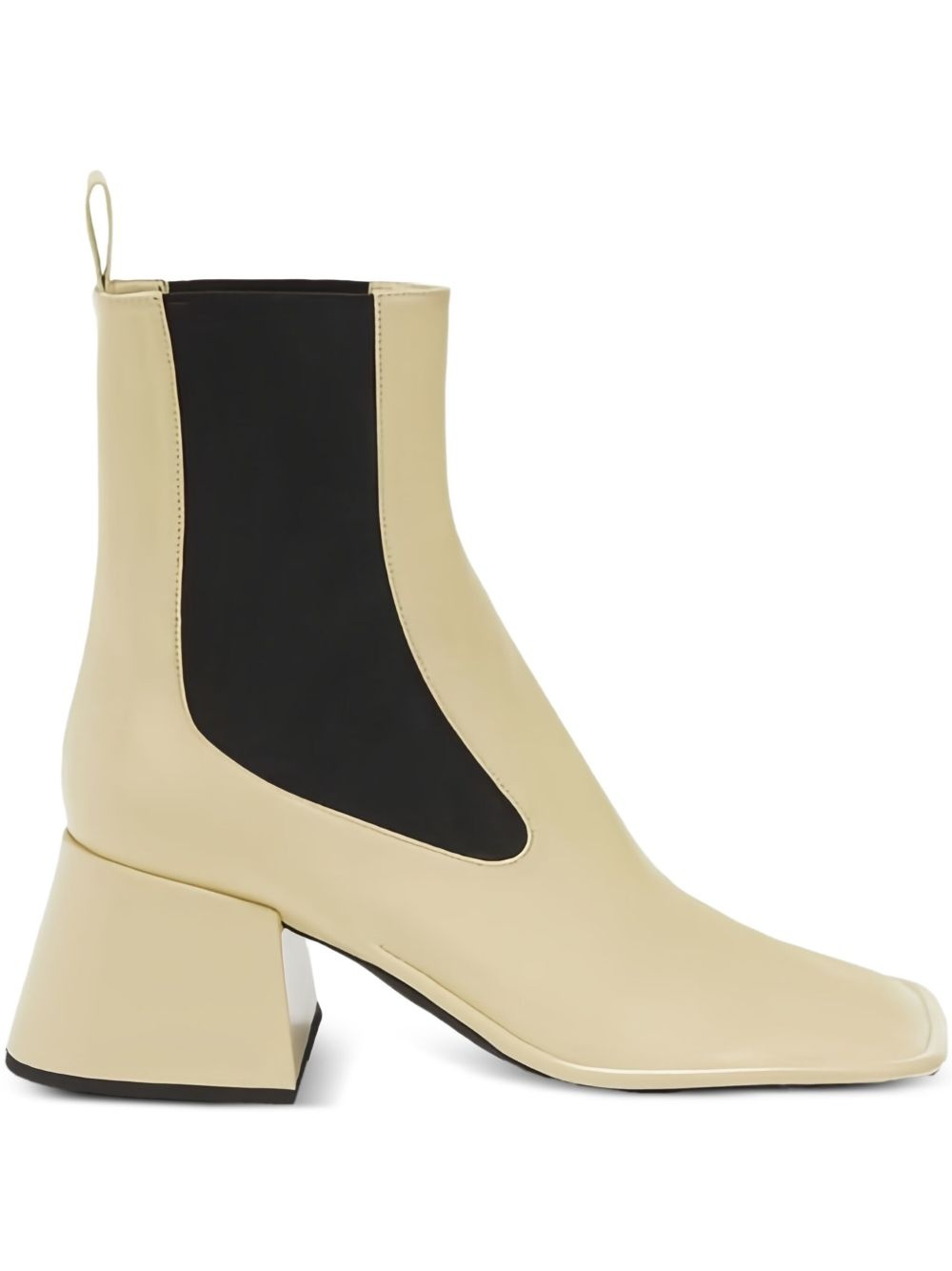 square-toe block-heel boots Highlights Imported Composition Outer: CALFSKIN 100%, Fabric 100% Sole: Calf Leather 100% Lining: Calf Leather 100%, Fabric 100%