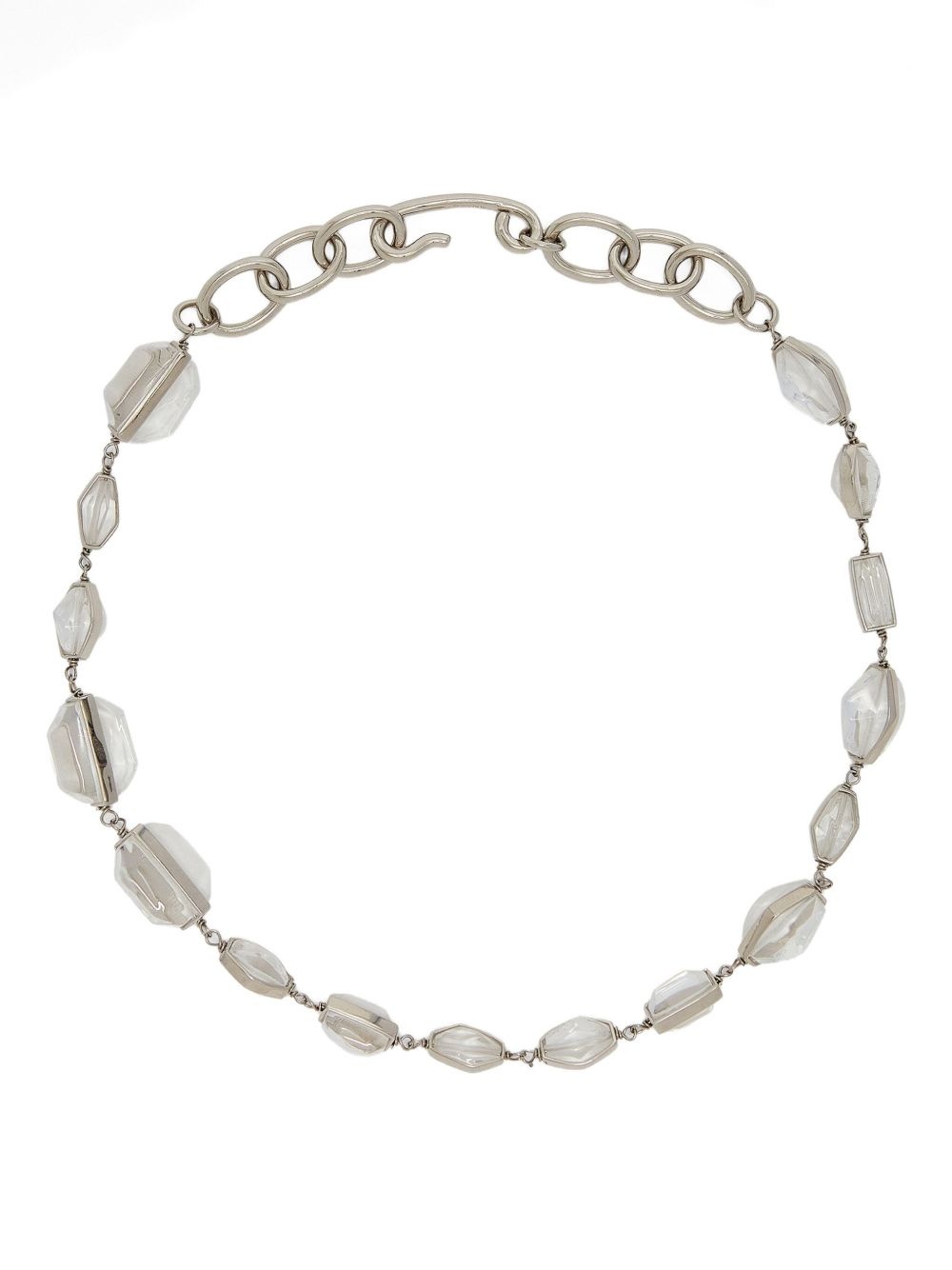 stone-embellished chain necklace Highlights - Silver-tone - Stone embellishment - Linked chain - Hook fastening fastening - Polished finish Made in Italy SIZE & FIT Measurement Length when open 18.5 in(47 cm)