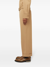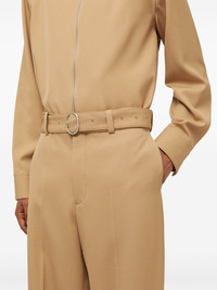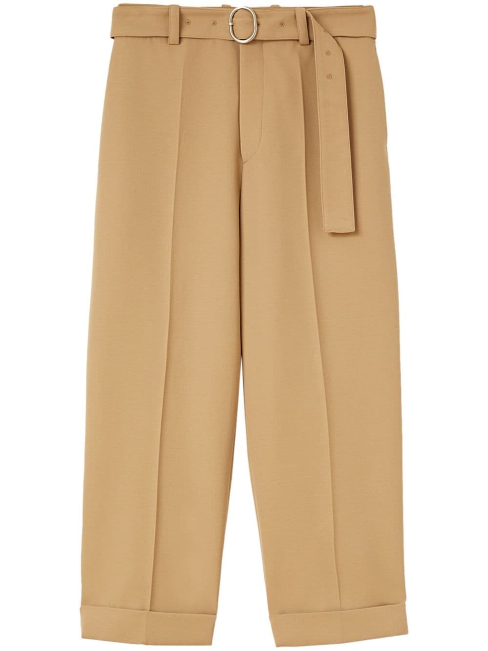 straight-leg belted wool trousers Highlights - Camel brown - Wool - Gabardine weave - Pleat detailing - Detachable and adjustable waist belt - Belt loops - Concealed front fastening - Straight leg - Two side inset pockets - Two rear welt pockets - Turn-up hem Made in Italy Composition Wool 100% SIZE & FIT FittingInformation Designed for a straight-leg, allowing for an unrestricted and comfortable fit over the leg The belt offers adjustability for fitted preferences Made from a midweight non-stretch fabric