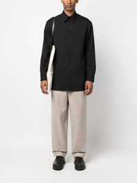 straight-leg cotton trousers Highlights - Taupe - Cotton/virgin wool - Mid-rise - Elasticated waistband - Front button and zip fastening - Two side inset pockets - Two rear patch pockets - Wide leg Made in Italy Composition Lining: Cotton 100% Outer: Virgin Wool 100% SIZE & FIT Model measurements Height 6 ft 2 in(1.87 m) Bust/Chest 36.22 in(92 cm) Hips 37 in(94 cm) Waist 27.95 in(71 cm) FittingInformation Designed for a relaxed tapered leg, allowing a comfortable loose fit above the knee with a closer fit towards the calves The elasticated waist allows for a comfortable fit Made from a midweight non-stretch fabric This piece fits true to size – take your usual size Washing instructions Dry Clean Only