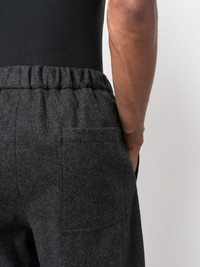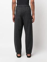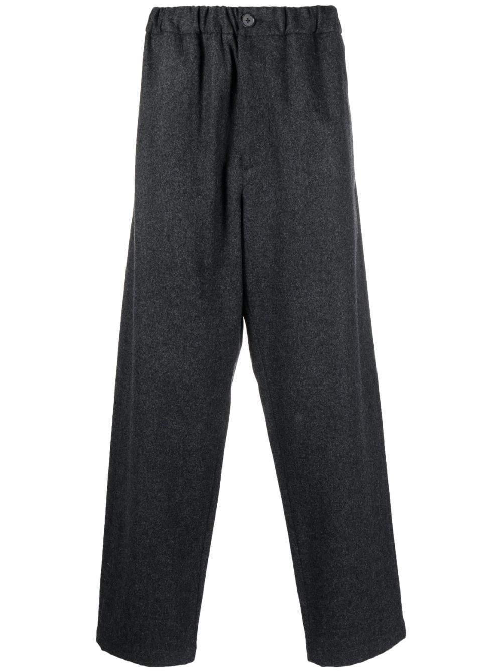 straight-leg cotton trousers Highlights - Beluga grey - Cotton - Straight leg - Elasticated waistband - Front button and zip fastening - Two side inset pockets - Two rear patch pockets Made in Italy Composition Lining: Cotton 100% Outer: Virgin Wool 100% SIZE & FIT Model measurements Height 6 ft 2 in(1.87 m) Bust/Chest 36.22 in(92 cm) Hips 37 in(94 cm) Waist 27.95 in(71 cm) FittingInformation Designed for a tapered leg, offering a loose unrestricted fit over the leg with a closer fit towards the ankle The partially elasticated waistband offers increased movement and comfort at the waist Made from a midweight non-stretch fabric This piece fits large – take one size down