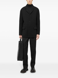 straight-leg wool trousers Jil Sander’s co-designers reflect on their founding ‘90s years to inspire the minimalist design of these black trousers. They’re cut from hardy wool gabardine to a straight-leg silhouette with smart pressed creases. Highlights - Black - Wool - Tailored design - Gabardine weave - Pressed crease - Mid-rise - Belt loops - Concealed front fastening - Straight leg - Two side slit pockets - Two rear welt pockets Made in Italy Composition Outer: Wool 100% Lining: Cotton 100%, Cupro 100% SIZE & FIT FittingInformation Designed for a straight-leg, allowing for an unrestricted and comfortable fit over the leg Made from a midweight non-stretch fabric This piece fits true to size – take your usual size Washing instructions Dry Clean Only