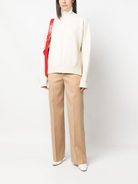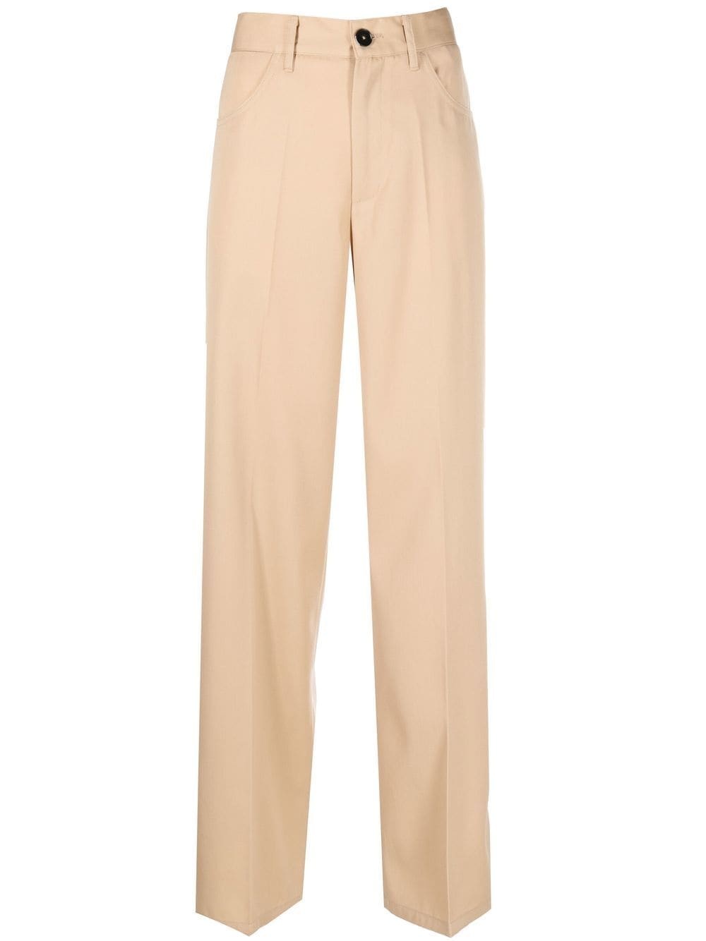 straight-leg wool trousers dark beige virgin wool/cotton belt loops front button and zip fastening two side inset pockets two rear patch pockets high-waisted straight leg Made in Italy Composition Lining: Cotton 100% Outer: Virgin Wool 100% SIZE & FIT Model measurements Height 5 ft 11 in(1.8 m) Bust/Chest 33.07 in(84 cm) Hips 37.4 in(95 cm) Waist 25.19 in(64 cm) FittingInformation Designed for a straight-leg fit, these trousers allow for a close fit at the waist and an unrestricted, comfortable fit over the leg Made from a midweight non-stretch fabric This piece fits true to size – take your usual size Measurement INSIDE LEG 34.64 in(88 cm) HIPS 44.88 in(114 cm) WAIST 35.43 in(90 cm) Washing instructions Dry Clean Only