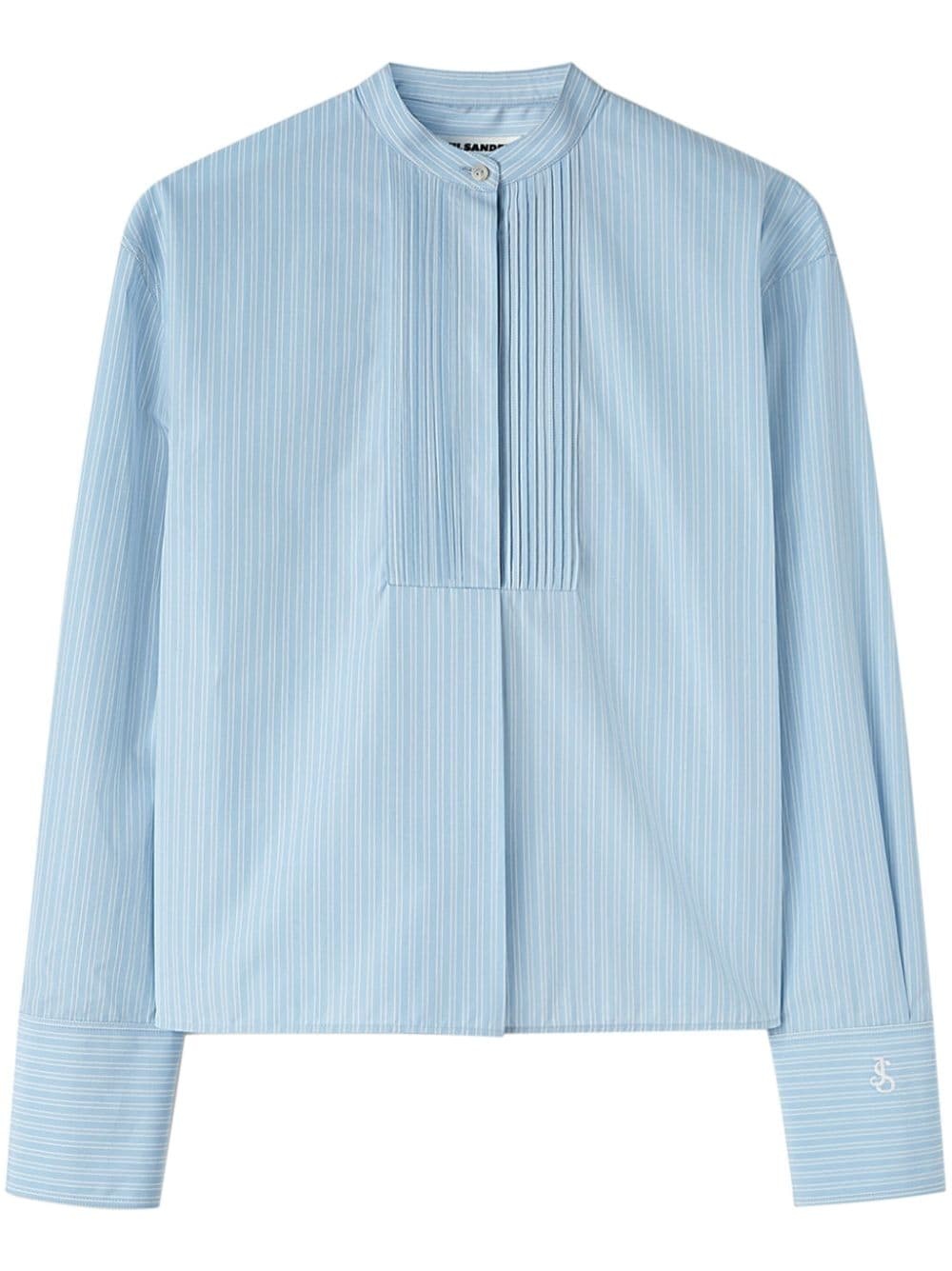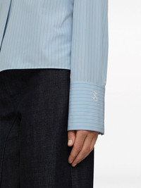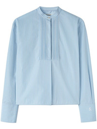 striped cotton shirt Highlights - Light blue - Cotton - Vertical stripe pattern - Band collar - Concealed front fastening - Long sleeves - Buttoned cuffs Made in Italy Composition Cotton 100% SIZE & FIT FittingInformation Designed for a boxy fit, intended for a loose fit throughout Cropped in length This piece fits true to size – take your usual size