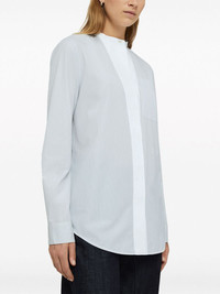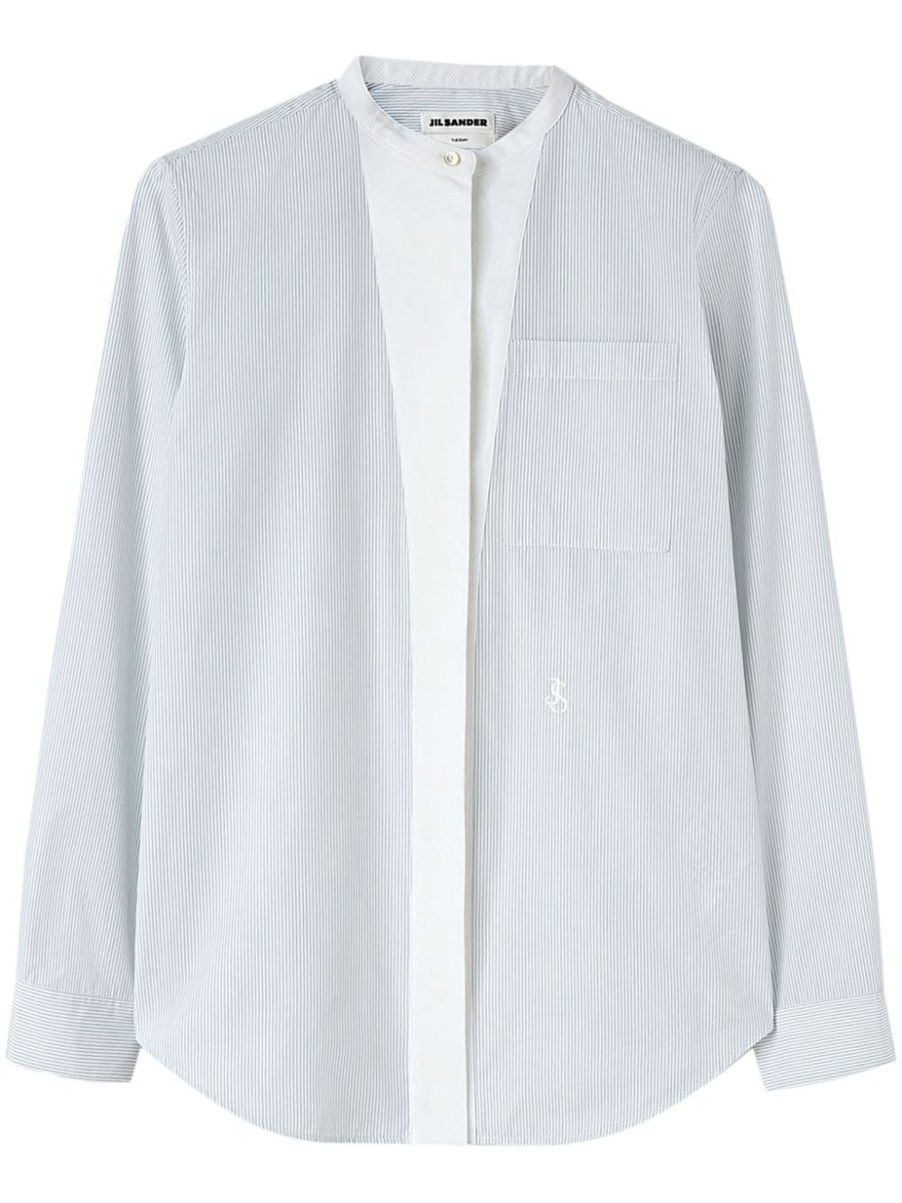 striped cotton shirt Highlights - White - Cotton - Vertical stripe pattern - Band collar - Front button fastening - Long sleeves - Chest patch pocket - Buttoned cuffs - Curved hem Made in Italy Composition Cotton 100% SIZE & FIT FittingInformation Designed for a relaxed fit, this piece allows for comfort and movement when worn This piece fits true to size – take your usual size