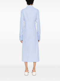 striped midi dress Highlights - Sky blue - Cotton - Poplin texture - Vertical stripe pattern - Front button fastening - Straight-point collar - Long sleeves - Buttoned cuffs - Tied waist - Two side slit pockets - Straight hem - Mid-length Made in Italy Composition Outer: Cotton 100% Lining: Cotton 100% SIZE & FIT Model measurements Height 5 ft 9 in(1.76 m) Bust/Chest 31.88 in(81 cm) Hips 35.43 in(90 cm) Waist 24.8 in(63 cm) FittingInformation Designed to be unstructured, offering a loose fit throughout The adjustable tie waist gives a more adaptable and personalised fit Made from a midweight non-stretch fabric This piece fits true to size – take your usual size