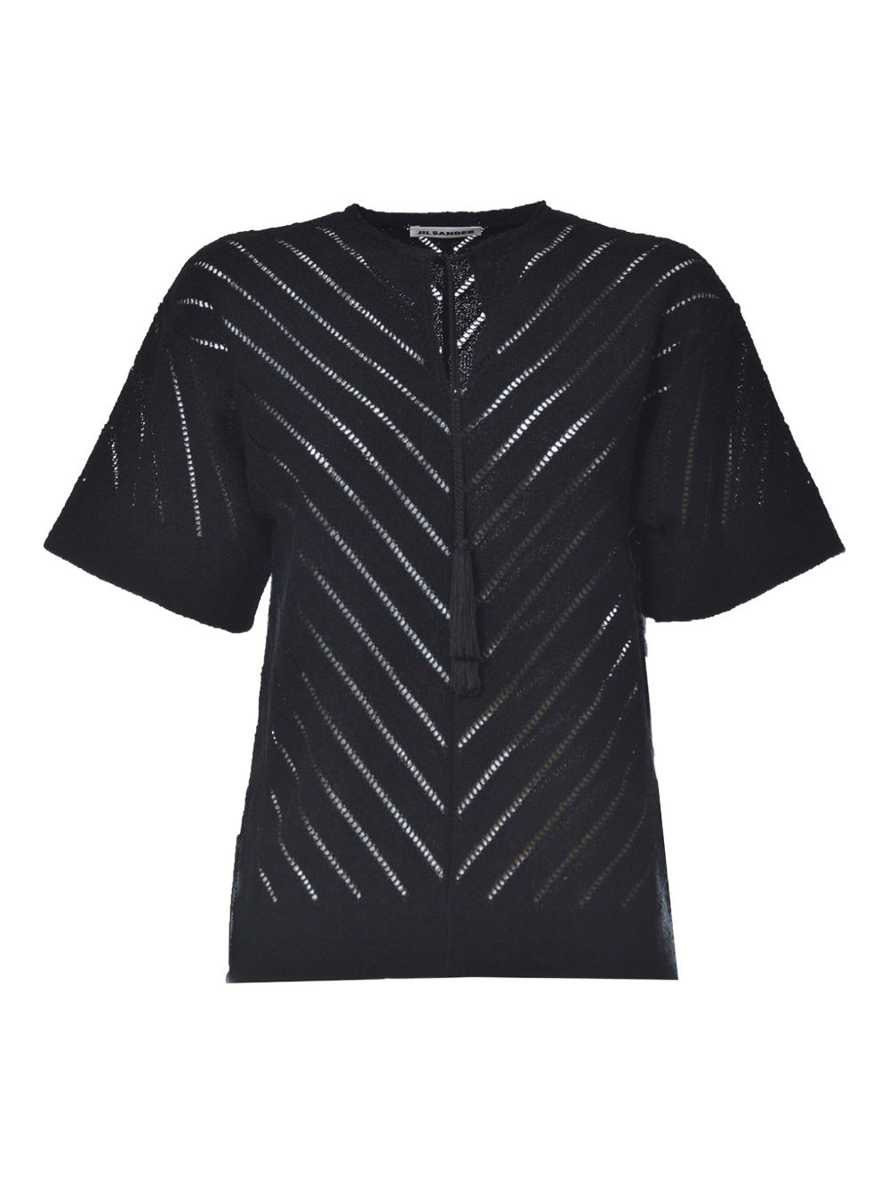 striped short-sleeved top Highlights - Black - Geometric cutouts - Tassel detail - Crew neckline - Oversized sleeves Made in Italy Composition Cotton 64%, Polyester 36% Washing instructions Read Manufacturer Guidelines