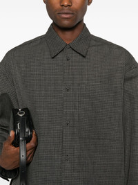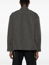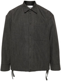 striped wool shirt jacket Highlights - Grey/multicolour - Virgin wool - Vertical stripe pattern - Pointed flat collar - Long sleeves - Buttoned-cuff sleeves - Chest patch pocket - Two side inset pockets - Drawstring hem - Front button fastening Made in Italy Composition Outer: Virgin Wool 100% Lining: Viscose 100% SIZE & FIT Model measurements Height 6 ft 2 in(1.88 m) Bust/Chest 36.61 in(93 cm) Hips 35.82 in(91 cm) Waist 27.95 in(71 cm) FittingInformation Designed for a boxy fit, intended for a loose fit throughout The internal drawstring at the hem allows for fitted preferences Made from a midweight non-stretch fabric This piece fits true to size – take your usual size
