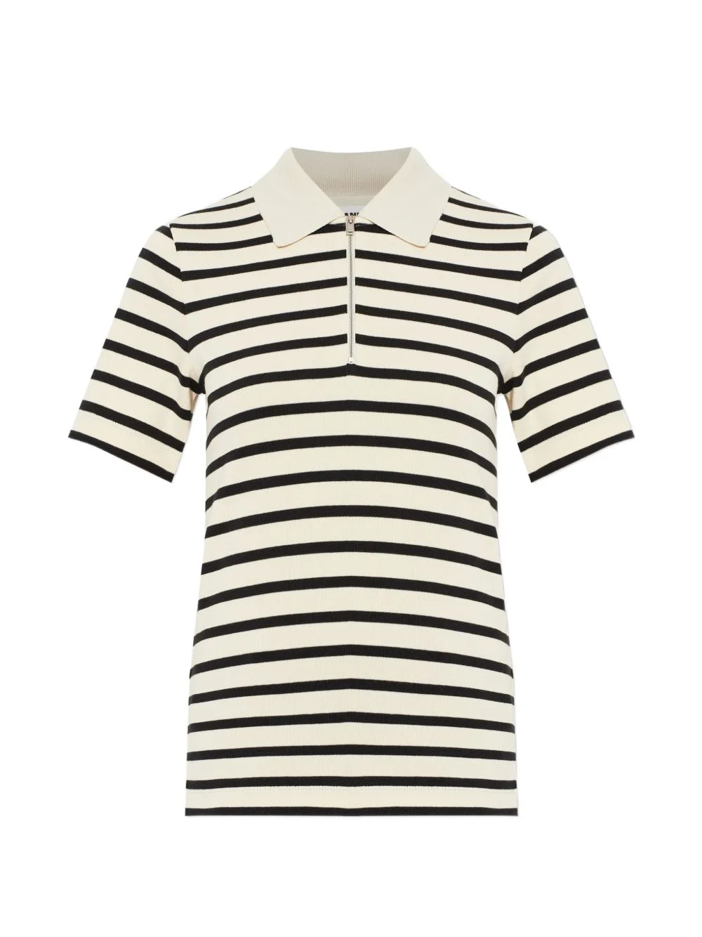 striped zip-up polo top Highlights - Off-white - Striped - Zip fastening - Short sleeves - Polo collar - Logo patch Made in Italy Composition Cotton 100% Washing instructions Read Manufacturer Guidelines