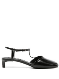 T-bar leather pumps Highlights - Black - Calf leather - Smooth grain - Square toe - T-bar strap - Buckle-fastening ankle strap - Kitten heel - Branded leather insole - Leather lining Made in Italy Composition Sole: Calf Leather 100% Outer: Calf Leather 100% Lining: Calf Leather 100% SIZE & FIT Measurement HEEL 1.57 in(4 cm) Sole height 0.39 in(1 cm)