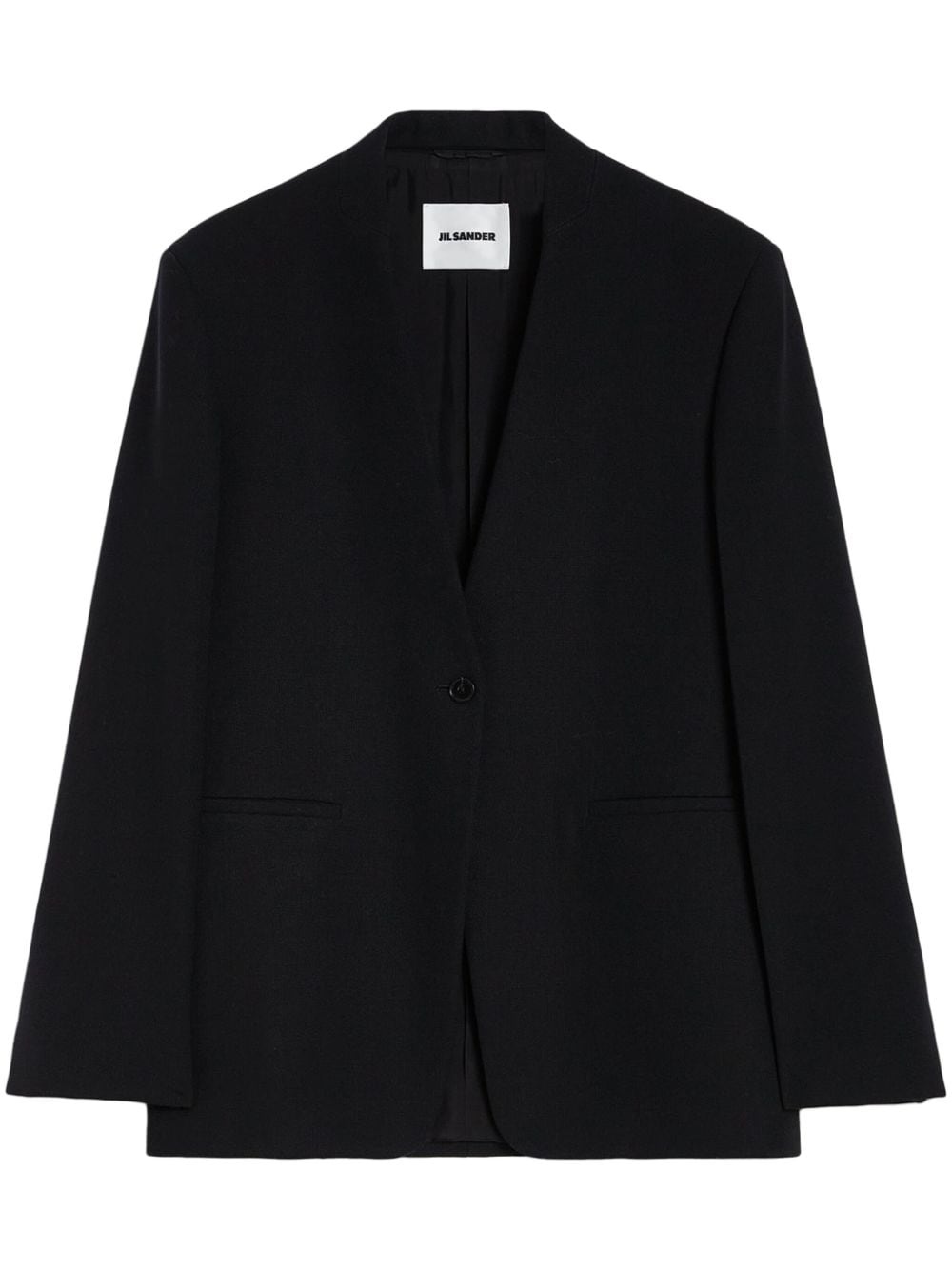 tailored blazer Highlights - Black - Wool - Tailored design - Front button fastening - No lapels - V-neck - Long sleeves - Two front welt pockets - Buttoned cuffs - Straight hem Made in Italy Composition Outer: Wool 100% Washing instructions Read Manufacturer Guidelines
