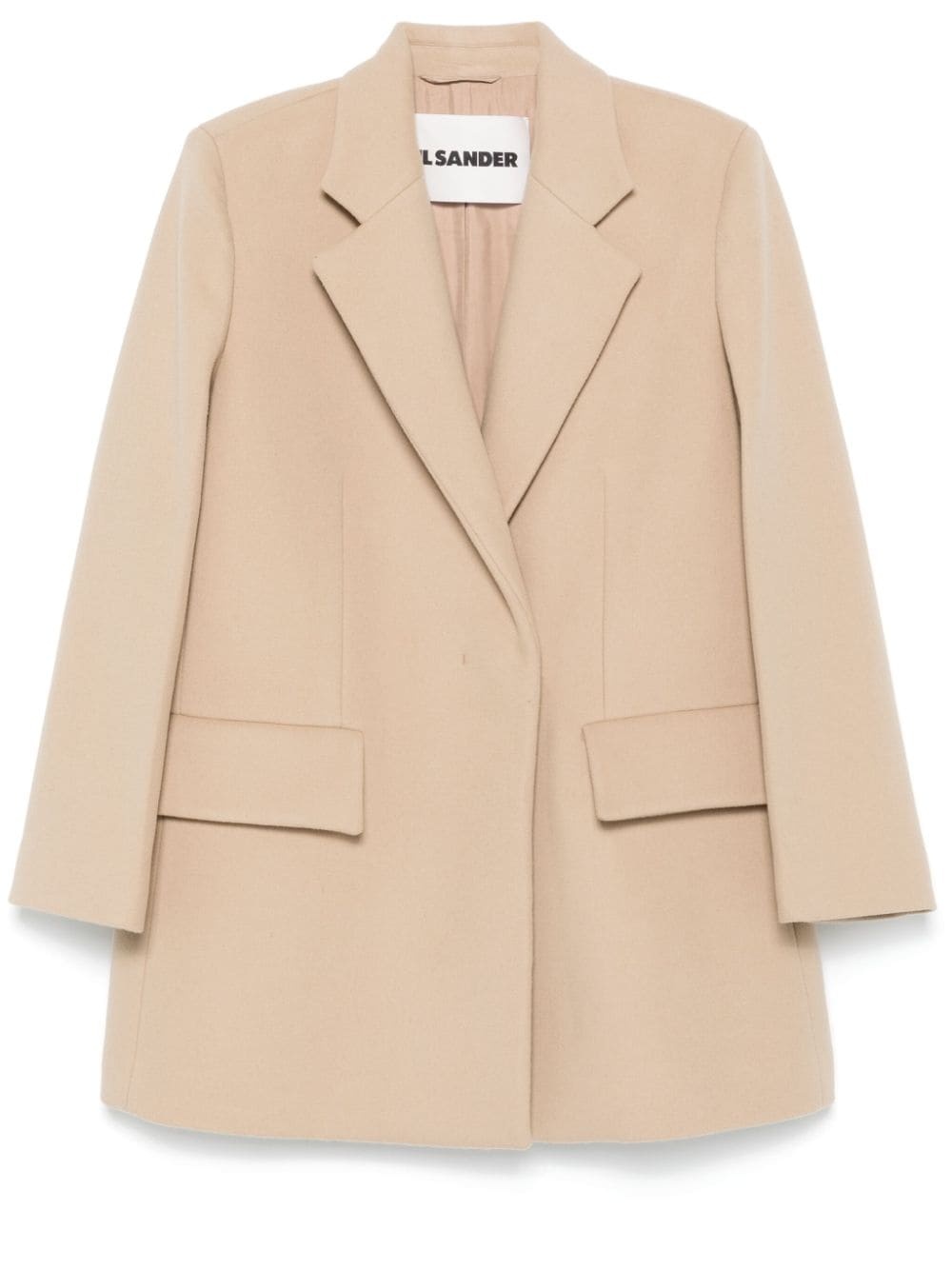 tailored coat Highlights - Light beige - Wool - Brushed effect - Double-breasted button fastening - Notched lapels - Shoulder pads - Long sleeves - Dart detailing - Two front flap pockets - Straight hem - Full lining - Thigh-length Made in Italy Composition Lining: Viscose 100% Outer: Wool 100% SIZE & FIT Model measurements Height 5 ft 10 in(1.78 m) Bust/Chest 33.46 in(85 cm) Hips 36.22 in(92 cm) Waist 23.22 in(59 cm) FittingInformation Designed to be unstructured, offering a loose fit throughout The internal shoulder pads offer a structured shape Made from a midweight non-stretch fabric
