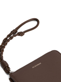 Tangle zipped knotted wallet Highlights - Brown - Hand-knotted strap - Embossed logo - Zip closure - Three card slots - Small note compartment Made in Italy Composition Outer: Calf Leather 100% SIZE & FIT Measurement DEPTH 0.78 in(2 cm) LENGTH 4.52 in(11.5 cm) WIDTH 4.33 in(11 cm)