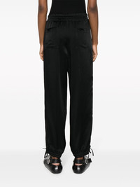 high-waisted tapered-leg trousers Championing minimalism, Jil Sander proposes clothing and accessories that are understated yet unique. A case in point, these black trousers are cut to a relaxed, sporty track silhouette with an elasticated drawstring waistband and cuffs elevated by its unconventional satin construction, lending lustre. Highlights - Black - Mid-rise - High waist - Tapered leg - Elasticated drawstring waistband - Two side inset pockets - Two rear patch pockets - Drawstring cuffs - Two rear patch pockets - Elasticated ankles Made in Italy Composition Acetate 74%, Viscose 26% SIZE & FIT Model measurements Height 5 ft 11 in(1.8 m) Bust/Chest 31.49 in(80 cm) Hips 36.61 in(93 cm) Waist 24.4 in(62 cm) FittingInformation Designed for a relaxed tapered cut, these trousers allow for a close fit at the waist and offer a loose fit at the thighs, with a closer fit toward the ankles The elasticated hem at the ankle allows for movement and a comfortable fit Made from a midweight non-stretch fabric This piece fits true to size – take your usual size Washing instructions Dry Clean Only