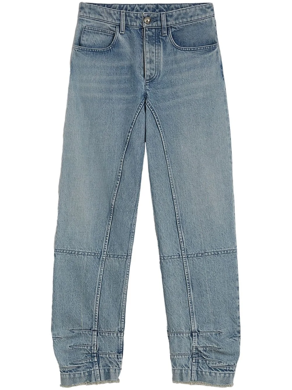 tapered-leg jeans Highlights - Blue - Cotton - Washed denim - Whiskering effect - Tapered leg - Belt loops - Concealed fly and button fastening - Classic five pockets - Logo patch to the rear - Frayed hem Made in Italy Composition Cotton 100%