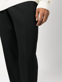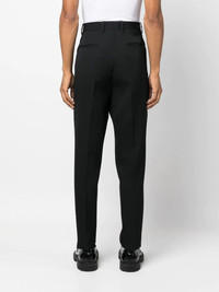 tapered-leg trousers black wool cotton concealed front fastening belt loops two rear welt pockets high waist tapered leg Made in Italy Composition Lining: Cotton 100%, Cupro 100% Outer: Wool 100% SIZE & FIT Model measurements Height 6 ft 2 in(1.87 m) Bust/Chest 38.18 in(97 cm) Hips 36.61 in(93 cm) Waist 29.13 in(74 cm) FittingInformation This piece fits true to size. We recommend you get your regular size Cut for a slim fit Made with a mid-weight non-stretch fabric Washing instructions Dry Clean Only