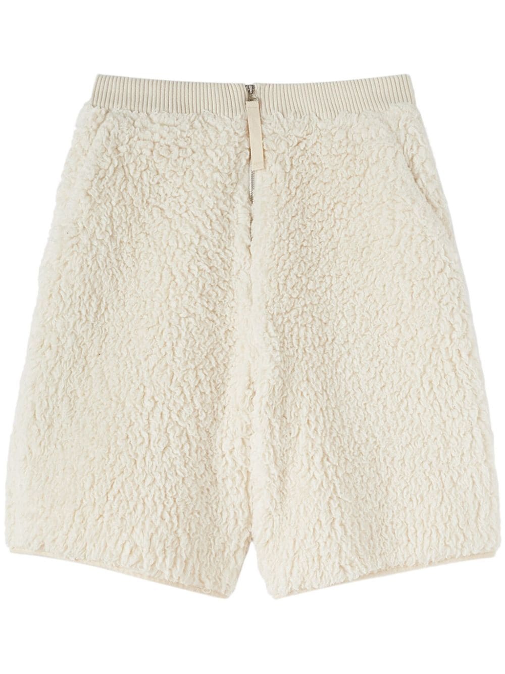 textured cotton shorts Highlights - White - Cotton - Faux-shearling design - Textured finish - Branded zip puller - Ribbed waistband - Front zip fastening - Two side inset pockets - Rear zip-fastening pocket - Straight hem Made in Italy Composition Lining: Viscose 95%, Spandex/Elastane 5% Outer: Cotton 100% Washing instructions Dry Clean Only