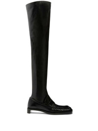 thigh-high boots Highlights - Black - Low block heel - Side zip fastening - Square toe Made in Italy Composition Outer: Lambskin 100% Lining: Calf Leather 100% Sole: Calf Leather 100%
