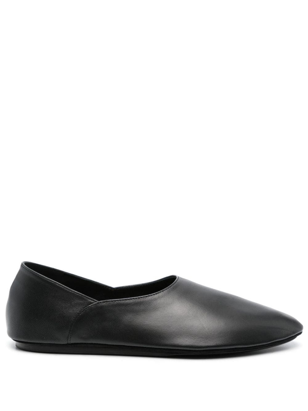 two-panel leather ballerina flats Highlights - Black - Calf leather - Tonal design - Almond toe - Slip-on style - Branded leather insole - Flat sole Made in Italy Composition Lining: Calf Leather 100% Outer: Calf Leather 100% Sole: Calf Leather 100% SIZE & FIT Measurement HEEL 0.31 in(0.8 cm)