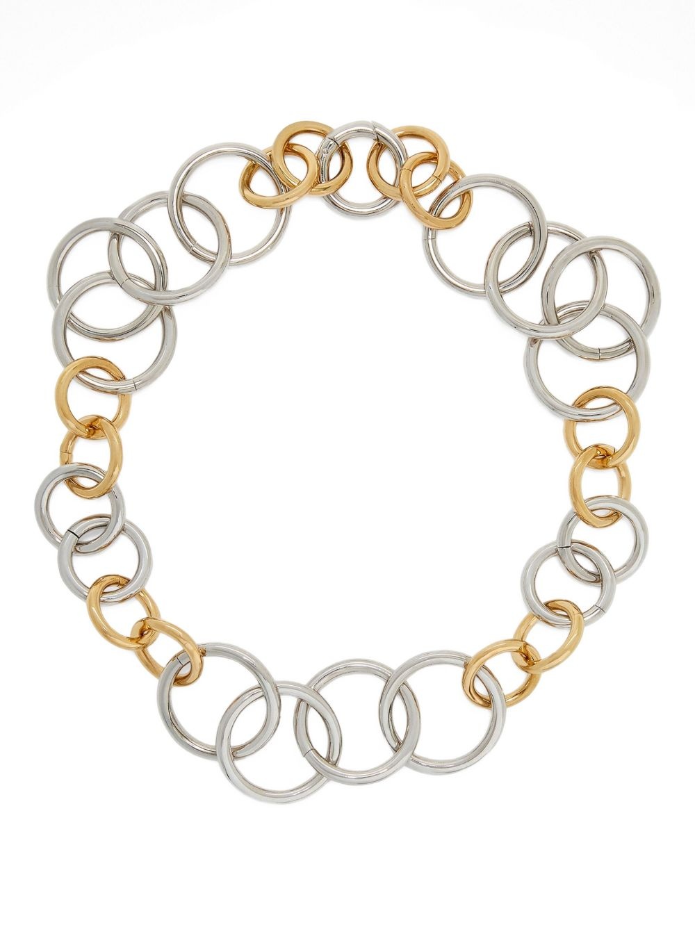 interlocking-ring necklace Highlights - Silver and gold - Interlocking chain - Circular links - Engraved logo Made in Italy