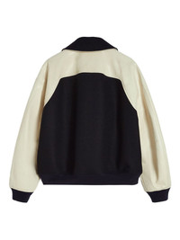 two-tone jacket Highlights - Black - Front press-stud fastening - Two side slit pockets - Embroidered logo to the front - Long sleeves Made in Italy Composition Wool 85%, Fabric 15% Washing instructions Read Manufacturer Guidelines