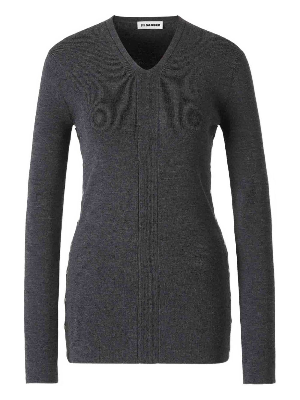 V-neck button-detail sweater Highlights - Charcoal grey - Wool - V-neck - Ribbed texture - Side button fastenings - Long sleeves Made in Italy Composition Wool 100% Washing instructions Read Manufacturer Guidelines
