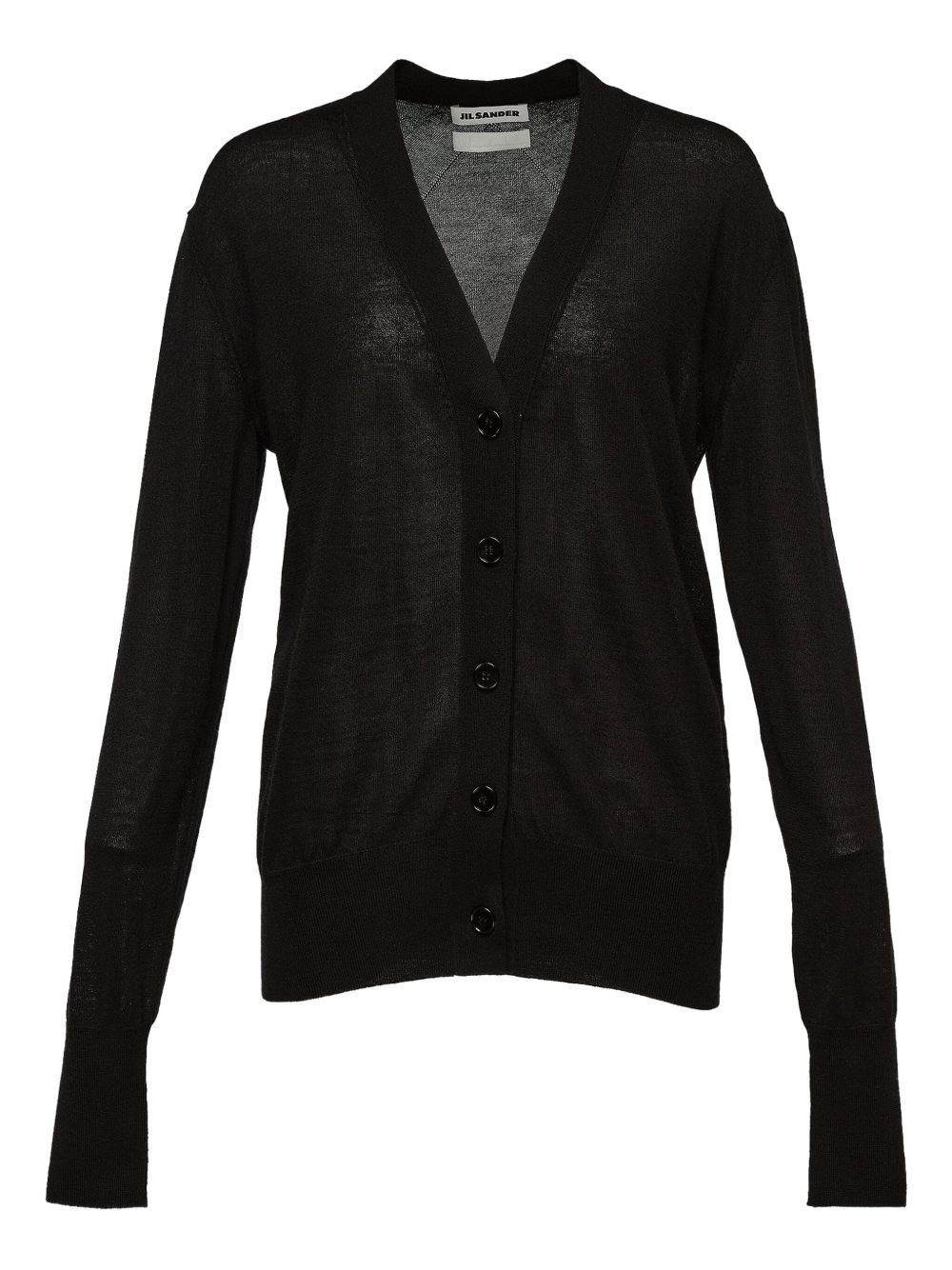 V-neck button-up cardigan Highlights - Black - V-neck - Button fastening - Long sleeves - Ribbed cuffs - Straight hem Made in Italy Composition Cashmere 100% Washing instructions Read Manufacturer Guidelines