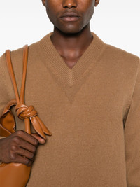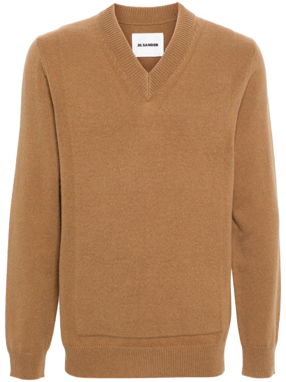 V-neck ribbed-knit jumper Highlights - Ochre brown - Virgin wool blend - Ribbed knit - Ribbed v-neck - Long sleeves - Ribbed cuffs and hem - Straight hem Made in Italy Composition Virgin Wool 95%, Polypropylene 3%, Wool 2% SIZE & FIT Model measurements Height 6 ft 2 in(1.88 m) Bust/Chest 36.61 in(93 cm) Hips 35.82 in(91 cm) Waist 27.95 in(71 cm) FittingInformation Designed for a relaxed fit, this piece allows for comfort and movement when worn Made with a midweight knit, this piece offers some stretch This piece fits true to size – take your usual size
